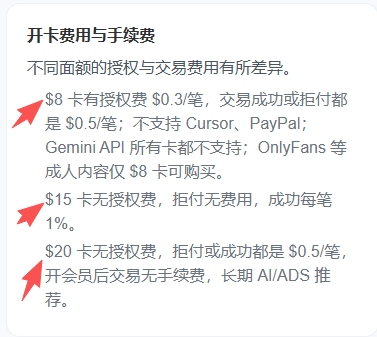 $8 大概指的是你需要付 $8 给服务商,他给你一张卡,具体的费率和不同卡的区别就是后面说明的部分