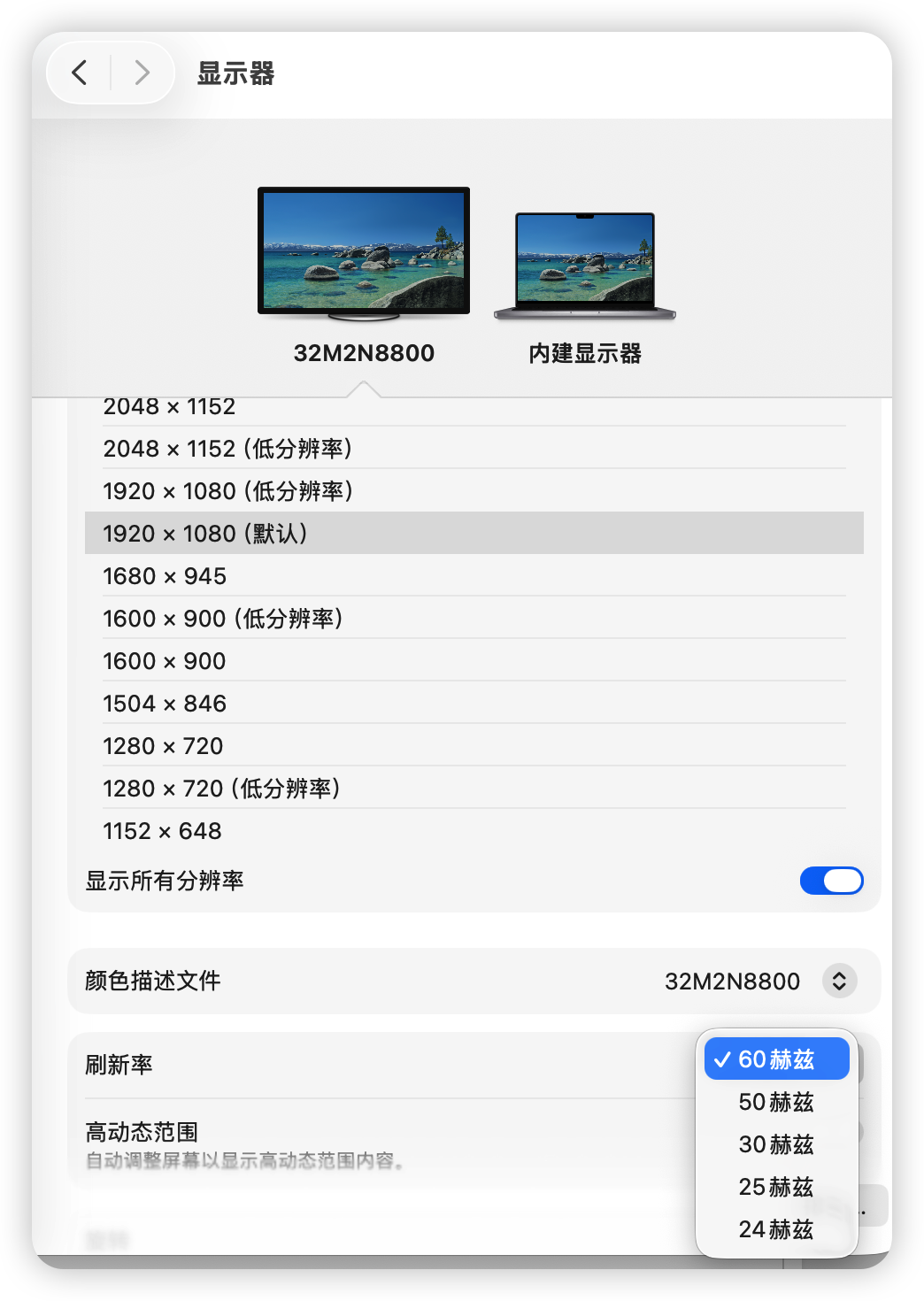 升级了系统之后外接显示器只有 4k 1920 60HZ.只有低分辨率才能 120hz
